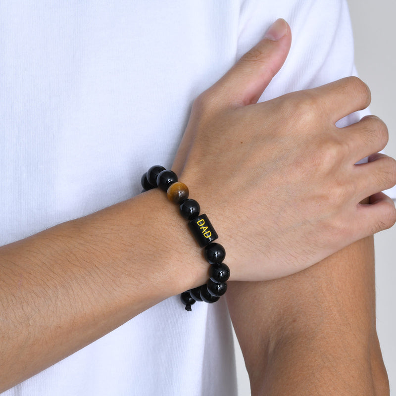 G廠-光面瑪瑙虎眼石DAD琉璃桶珠可調節編織手鍊黑色「BR-1666」25.07-4