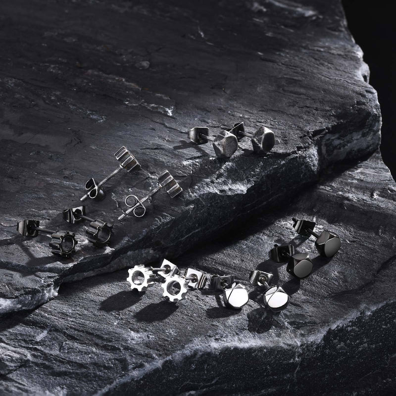 G廠-不鏽鋼齒輪耳釘復古灰色男士配飾「ES-529」25.04-3