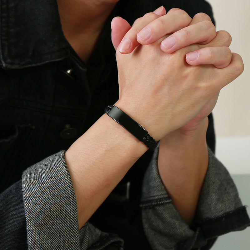G廠-個性時尚不鏽鋼黑色彎牌超纖皮手鐲手鍊男款「BL-526」25.07-3