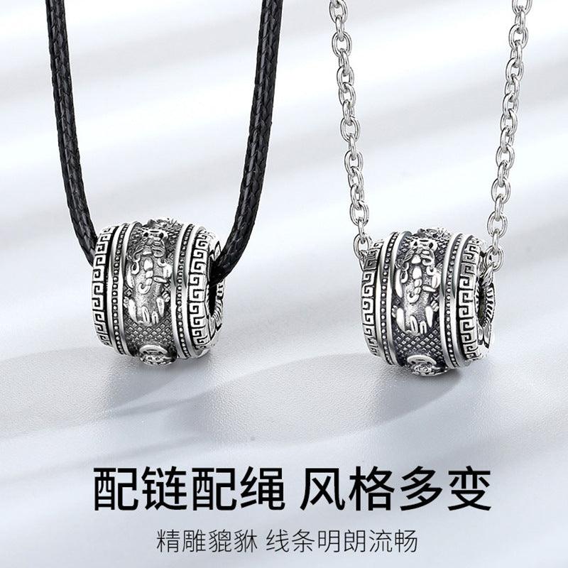 G廠-防泰銀貔貅吊墜男款潮流個性嘻哈風可轉動項飾復古貔貅旋轉項鍊「X404」24.11-1