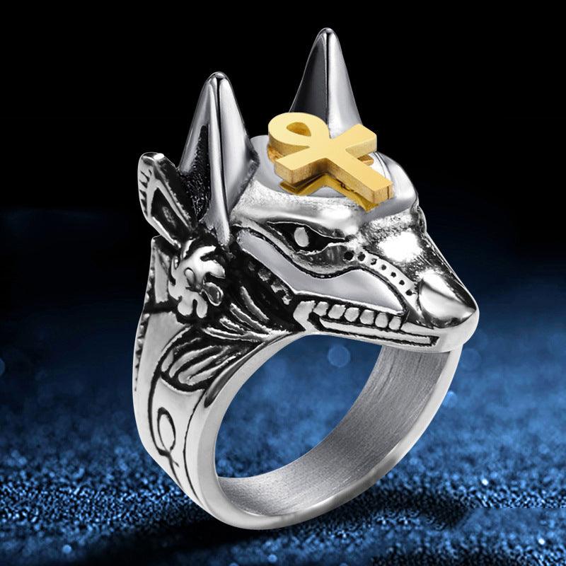 G廠-阿努比斯死神戒指男士胡狼頭防身食指戒個性霸氣仿泰銀男款戒指「J848」24.11-1