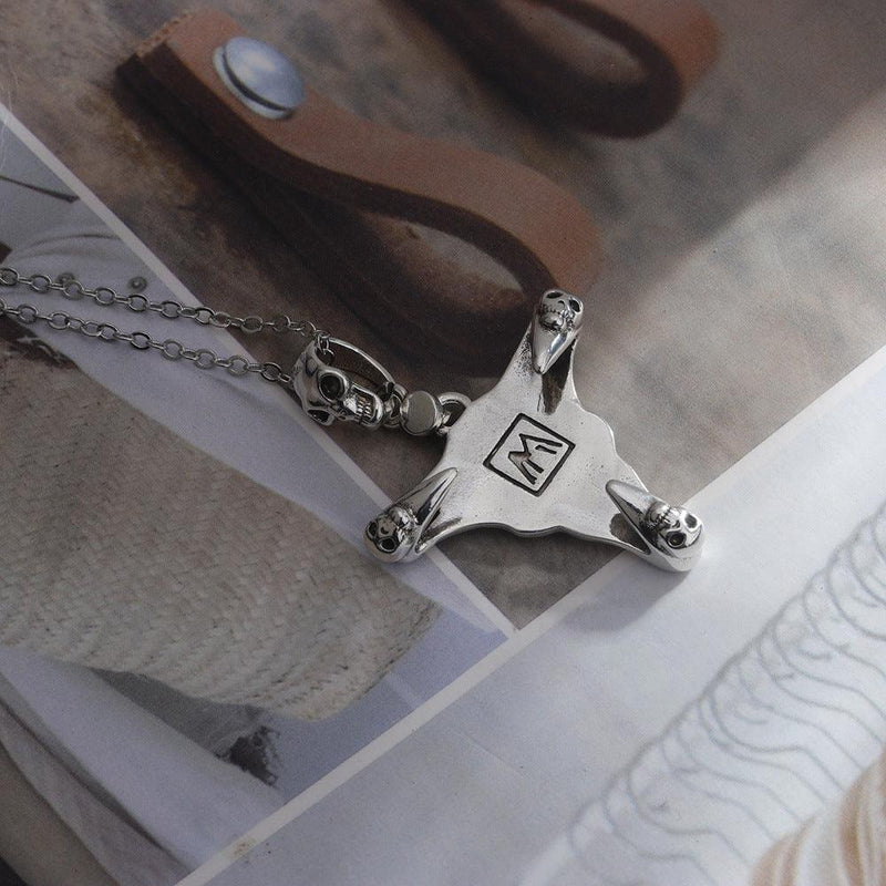 G廠-骷髏頭卡槽項鍊男個性冷淡風鏤空鎖骨鏈時尚百搭高級感愛心吊墜「X988」25.02-3