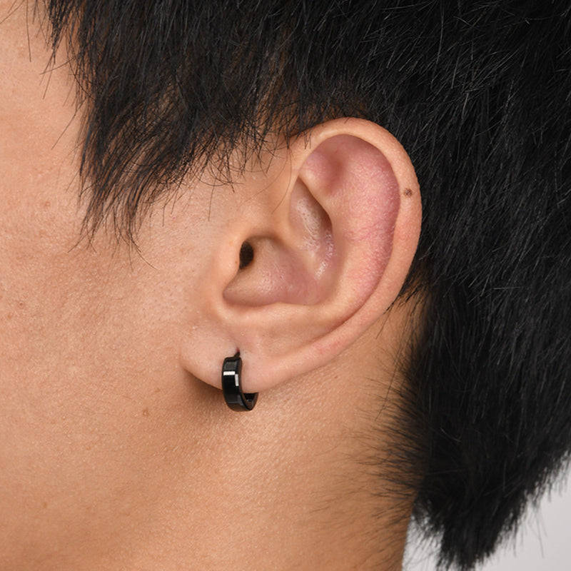 G廠-飾品男士日常不鏽鋼黑鋯石八芒星耳圈有耳洞款單只耳飾「EH-749」25.05-3