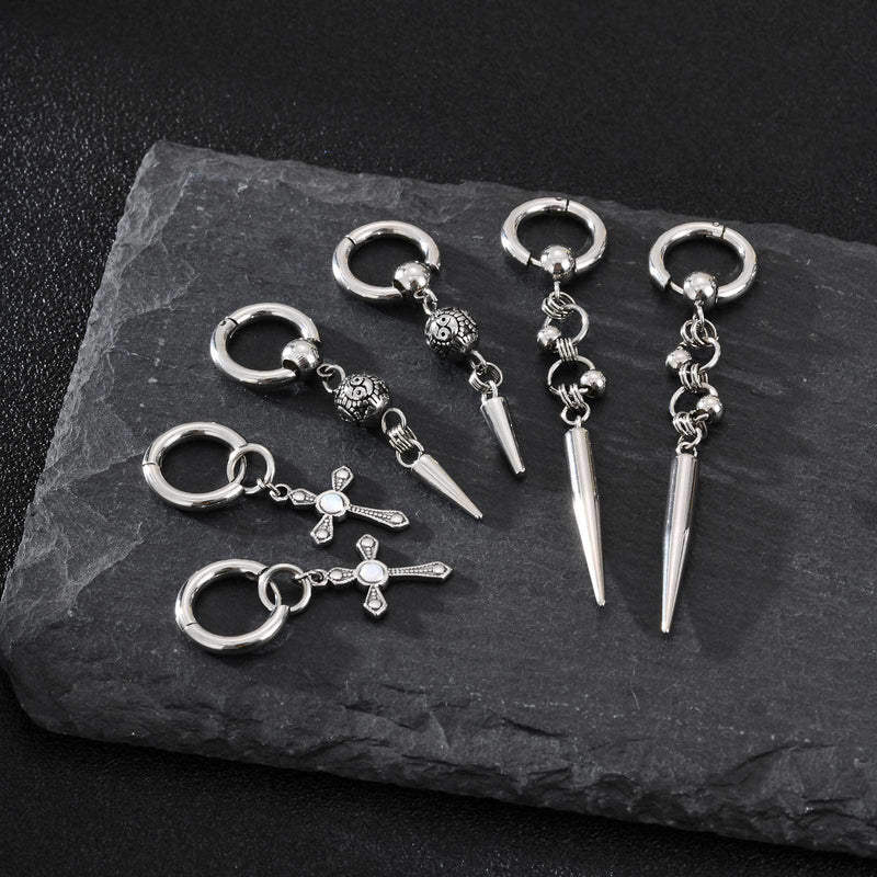G廠-飾品龐克潮流個性百搭不鏽鋼十字架幾何錐形耳飾男款「ED-900」25.07-1