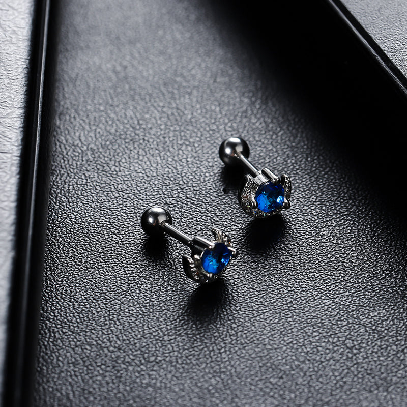 G廠-藍色月亮螺旋耳釘男潮個性冷淡風螺絲耳環女時尚簡約藍鑽鋯石耳飾「ER854」25.09-4