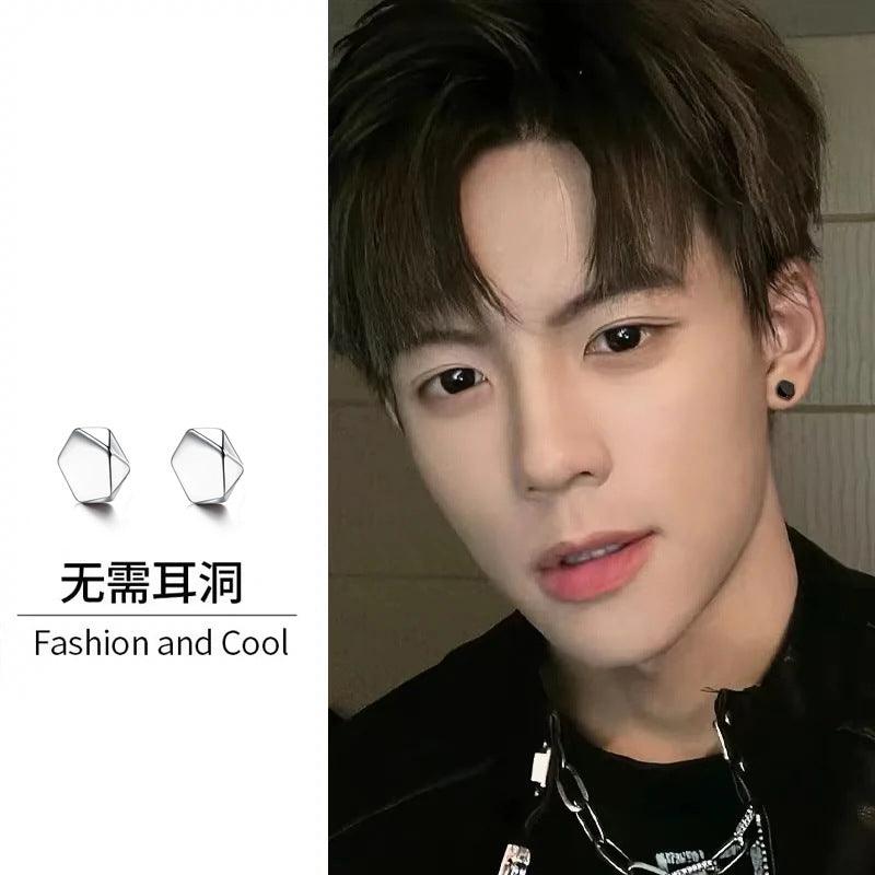 G廠-菱形磁吸耳夾無耳洞吸鐵石耳環男潮個性單只耳飾無孔無洞嘻哈耳釘「ES669」24.11-1