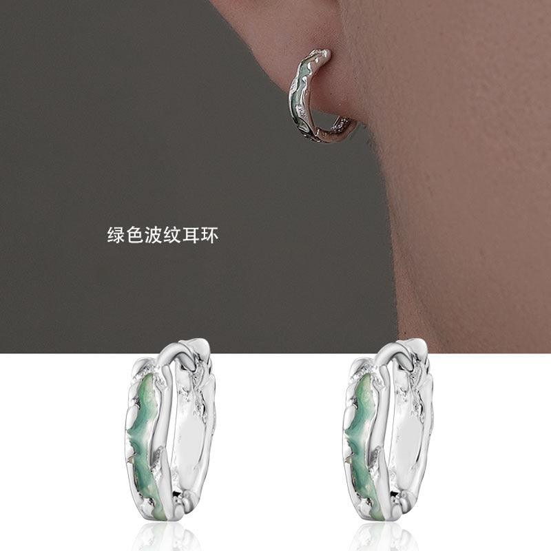 G廠-薄荷綠水波紋耳環中性風無耳洞耳夾男女款高級感滴膠不規則耳扣「ED157」25.02-2