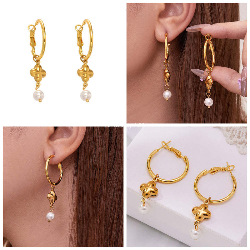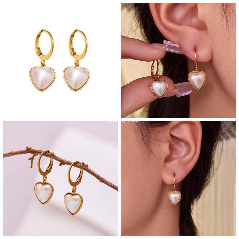 B廠-跨境新款飾品不鏽鋼愛心貝珠吊墜耳環鍍18k真金耳飾不掉色「F017」25.10-5