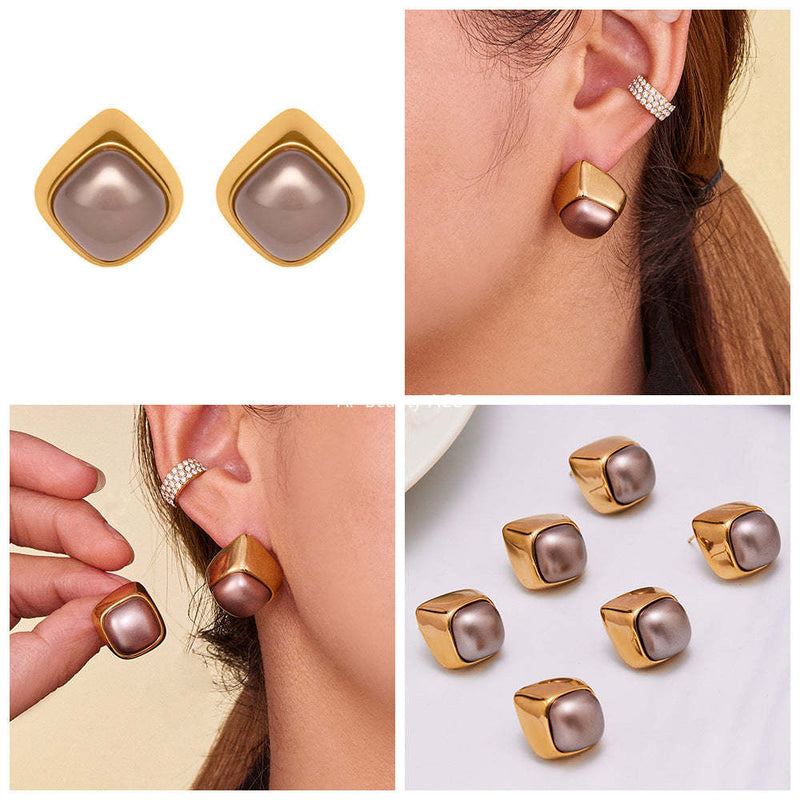 B廠-不鏽鋼幾何異形灰色仿珍珠耳釘小眾設計新款耳飾鍍18k真金「F629」25.10-5