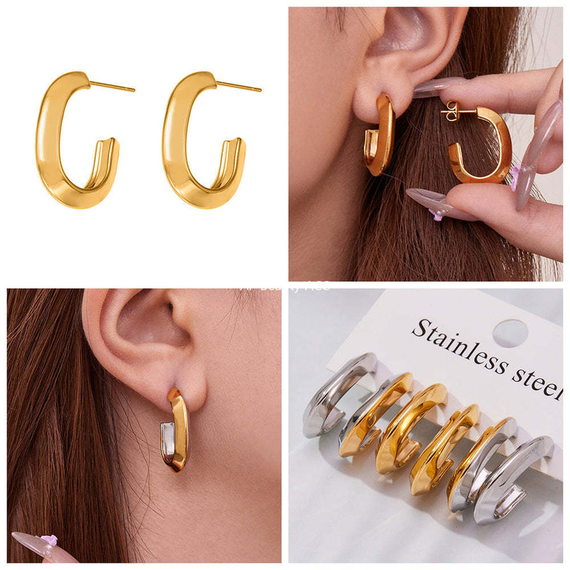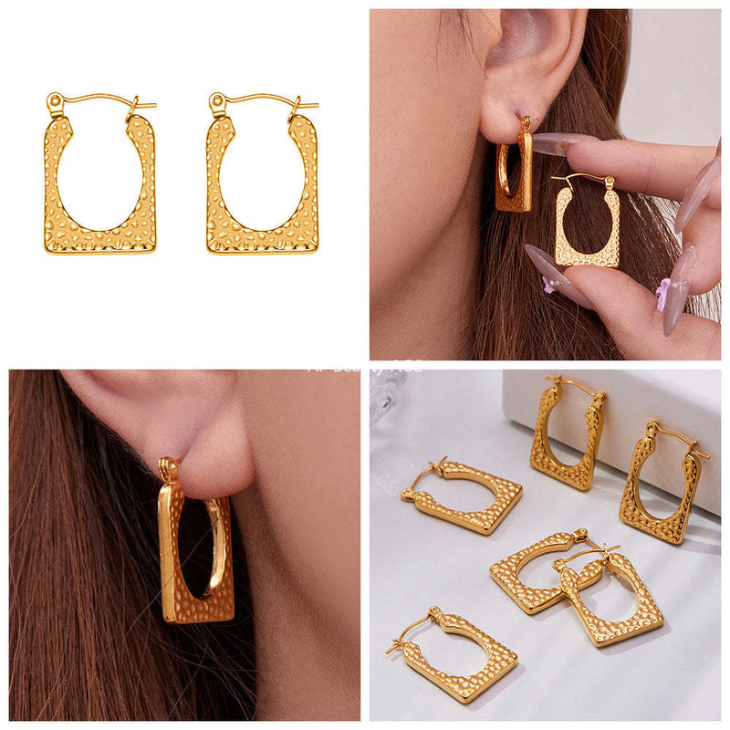 B廠-不鏽鋼幾何U型重工錘紋耳環跨境熱銷新款耳飾鍍18k金不掉色「F624」25.10-5
