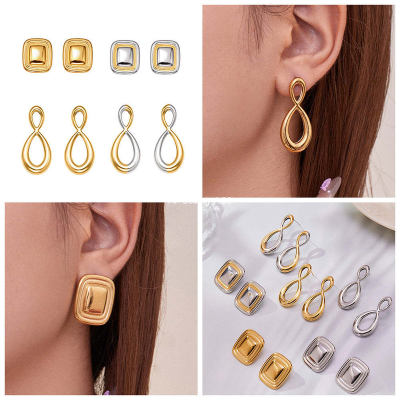 B廠-跨境新款不鏽鋼空心8子耳環ins小眾設計耳飾鍍18k金不掉色「F625-F626」25.10-5