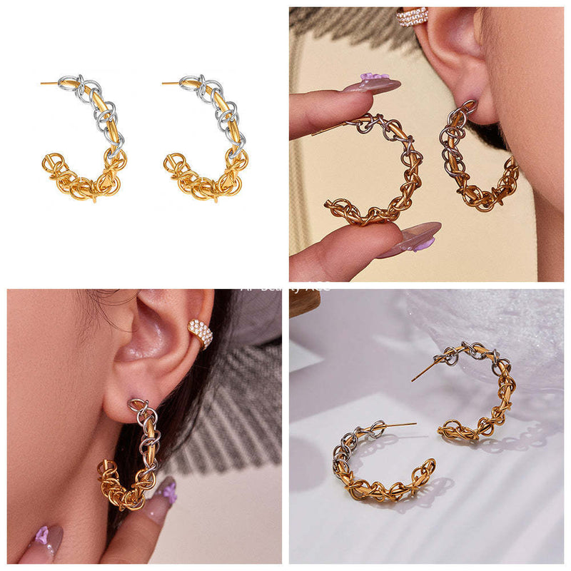 B廠-不鏽鋼嘻哈環扣纏繞C型拼色間電耳環歐美小眾耳飾鍍18k真金「F677」25.10-5