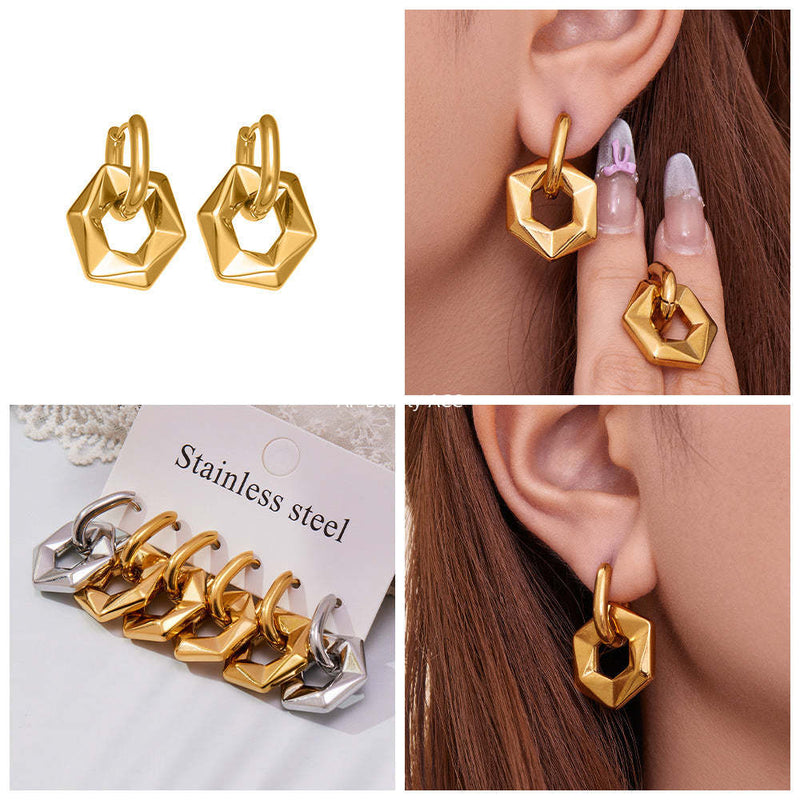 B廠-不鏽鋼幾何異形橢圓吊墜耳環INS歐美風簡約氣質耳飾鍍18k金「F364」25.10-5
