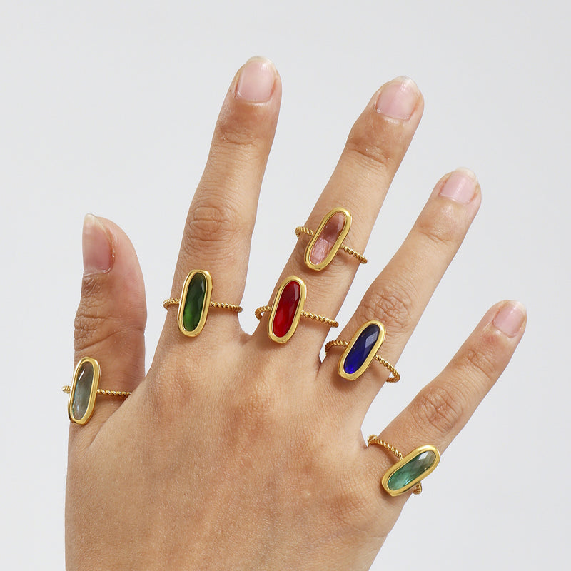 B廠-歐美18k真金不鏽鋼戒指捷克玻璃螺紋鋼珠開口女士珠寶手飾「TXA277」25.06-3