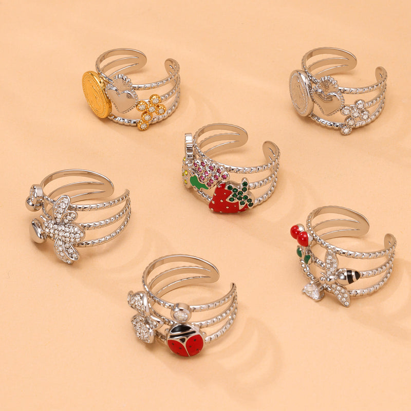 B廠-5A鋯石手工滴油指環百搭高級感手飾鈦鋼開口戒指ins不掉色「A756-A757」25.06-4
