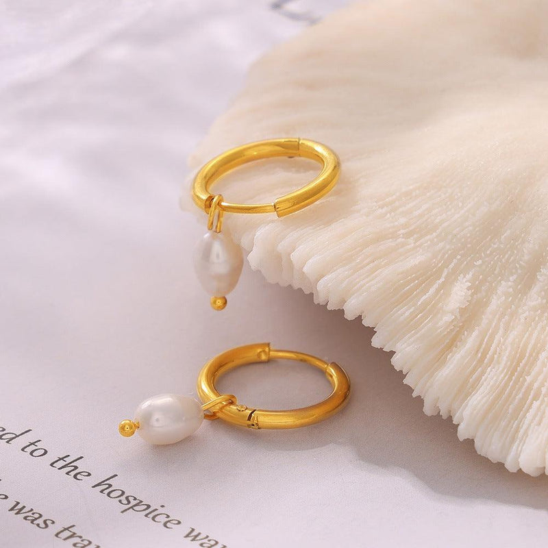 B廠-韓版ins風小眾天然淡水珍珠耳環高級感鈦鋼鍍18k金簡約百搭耳飾女「F451」24.07-3