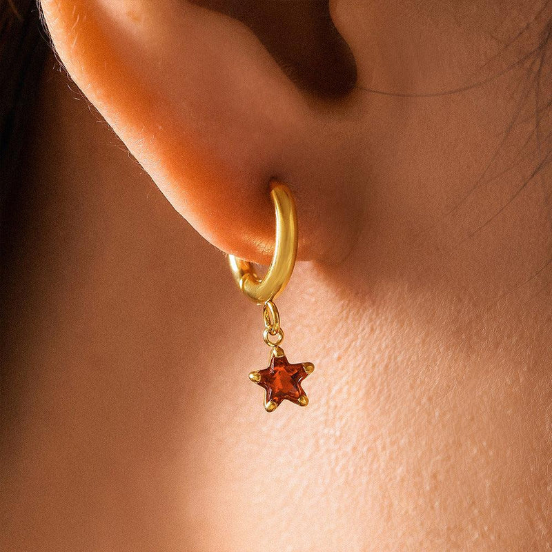 B廠-跨境熱銷多彩玻璃鑽五角星耳墜 鍍18K真金歐美小眾不鏽鋼穿孔耳環「F1638」24.10-1