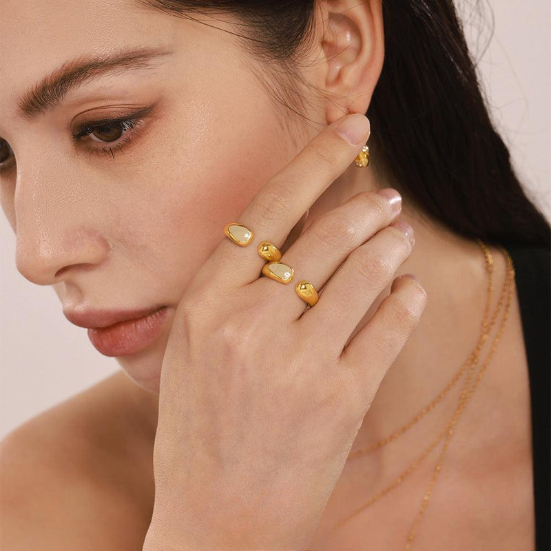 B廠-ins風天然石串珠雙層戒指不鏽鋼鍍18k真金歐美跨境小眾配飾「A961」24.11-5