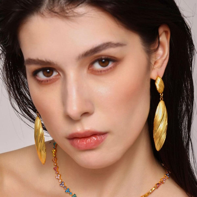 B廠-18K真金PVD電鍍雙層貝殼長款耳墜耳釘時髦走秀模特配飾「F1631」25.02-1
