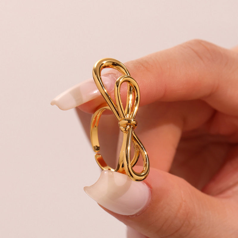 B廠-蝴蝶結開口戒指ins簡約法式Ring不鏽鋼18K金跨境食指戒批發「A776」25.07-1