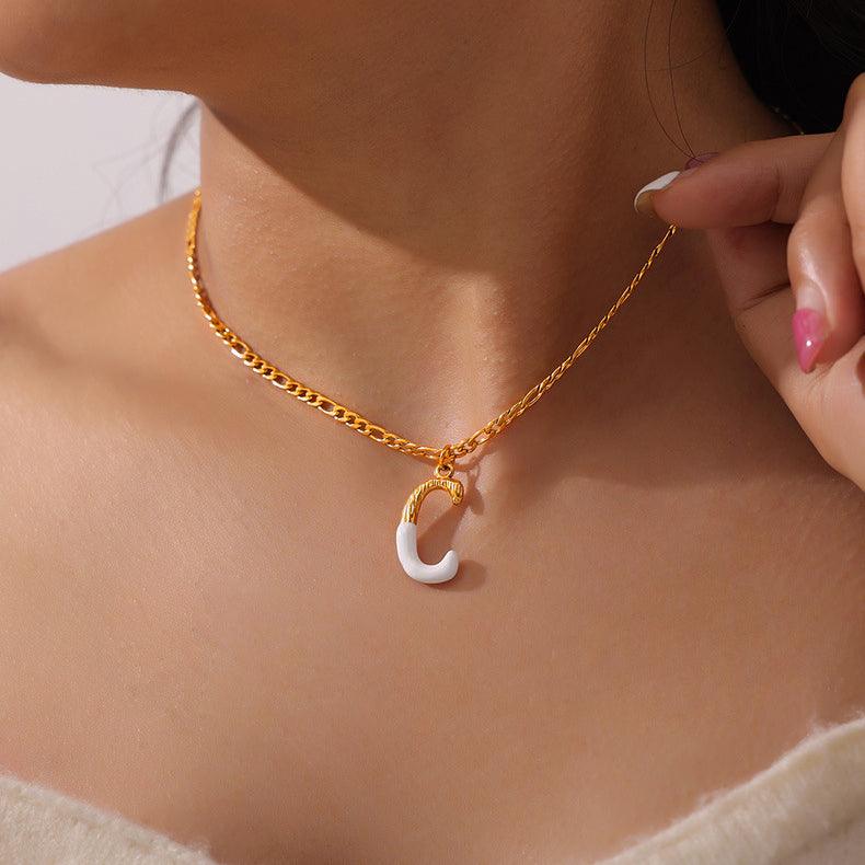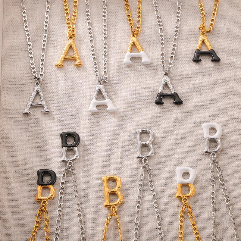 B廠-歐美簡約輕奢鈦鋼26字母項飾小眾百搭不掉色項鍊彩色滴油飾品批發「P1993」24.05-2