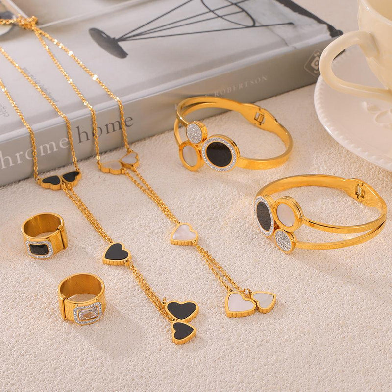 B廠-歐美INS新款時尚百搭戒指手鐲女鈦鋼鍍18K金鑲鑽幾何項鍊套裝飾品「P040-A040-Z040」24.05-2