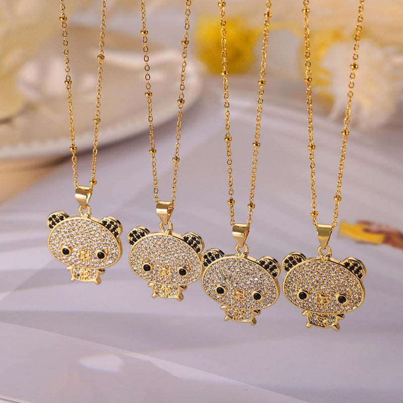 B廠-銅鑲鋯石小熊吊墜女卡通優雅動物百搭鈦鋼項鍊可愛小眾飾品「P1951」24.04-4