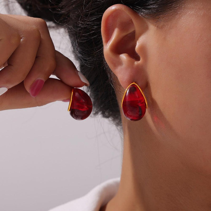 B廠-跨境復古時尚百搭滴油吊墜鎖骨鏈耳環女鈦鋼鍍金簡約輕奢設計套裝「F020-P020」24.04-4