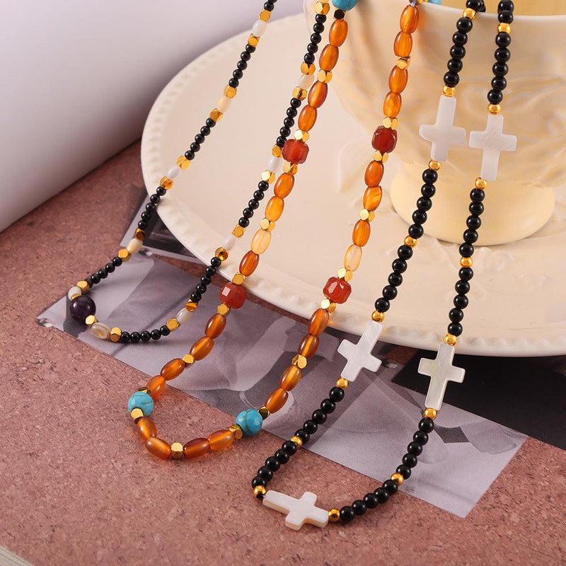 B廠-日韓新品小眾天然石手工串珠項鍊女十字架配飾鈦鋼圓珠鏈飾品批發「P1949-50-P1968」24.04-4