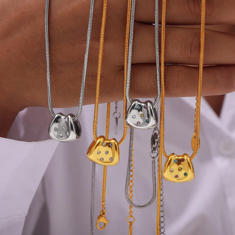 B廠-歐美跨境輕奢百搭鑲鋯石小裙擺吊墜鈦鋼項鍊女優雅鎖骨鏈飾品批發「P1958」24.04-4