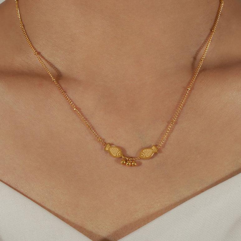 B廠-中國風雙魚戲珠鈦鋼項鍊時尚百搭設計感輕奢錦鯉鎖骨鏈女小眾飾品「P1803」24.04-4