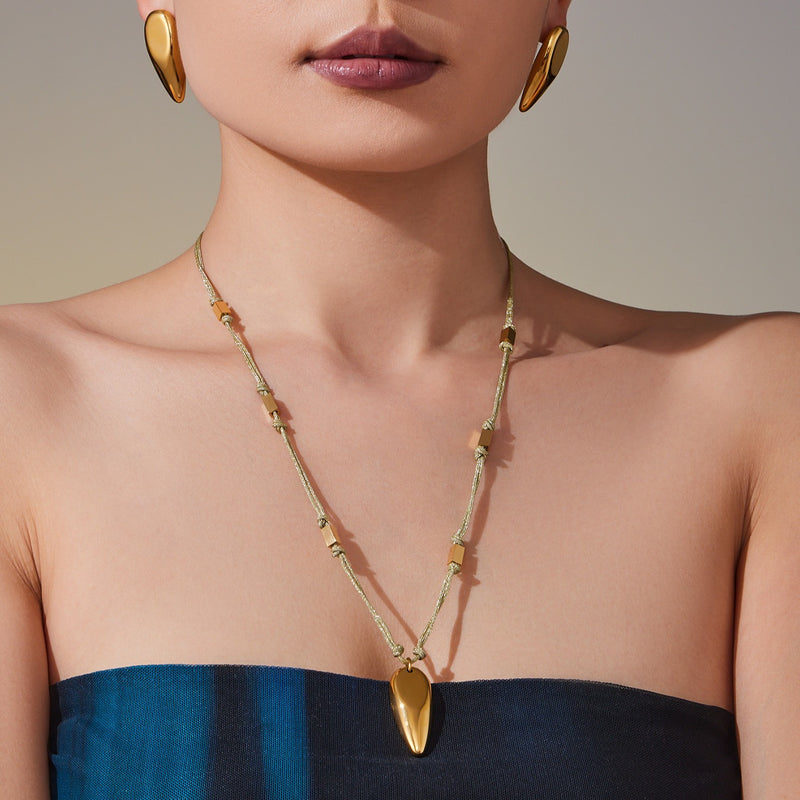 B廠-時尚皮繩抽拉可調節幾何光面吊墜項鍊 不鏽鋼輕奢毛衣鏈「TXP428-TXF428」25.10-2