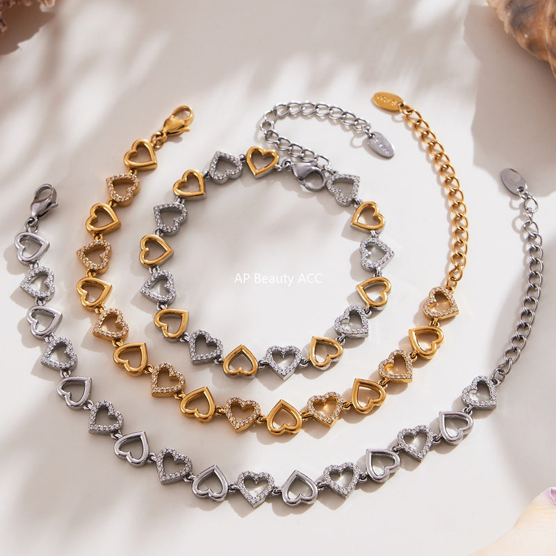 B廠-跨境新款不鏽鋼滿鑽愛心手工鏈項鍊手鍊套裝鍍18k真金飾品「TXP417」25.10-1