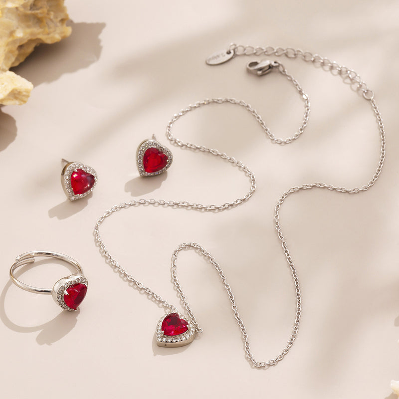 B廠-不鏽鋼5a鋯石愛心項鍊戒指耳環鍍18k金個性疊戴鎖骨鏈首飾「TXP354」25.08-2