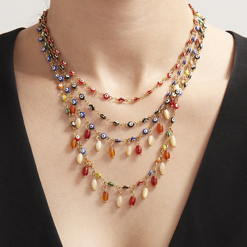 B廠-不鏽鋼歐美土耳其邪惡之眼多色七彩不鏽鋼項鍊橢圓眼睛飾品「P1528-P2159」25.08-3