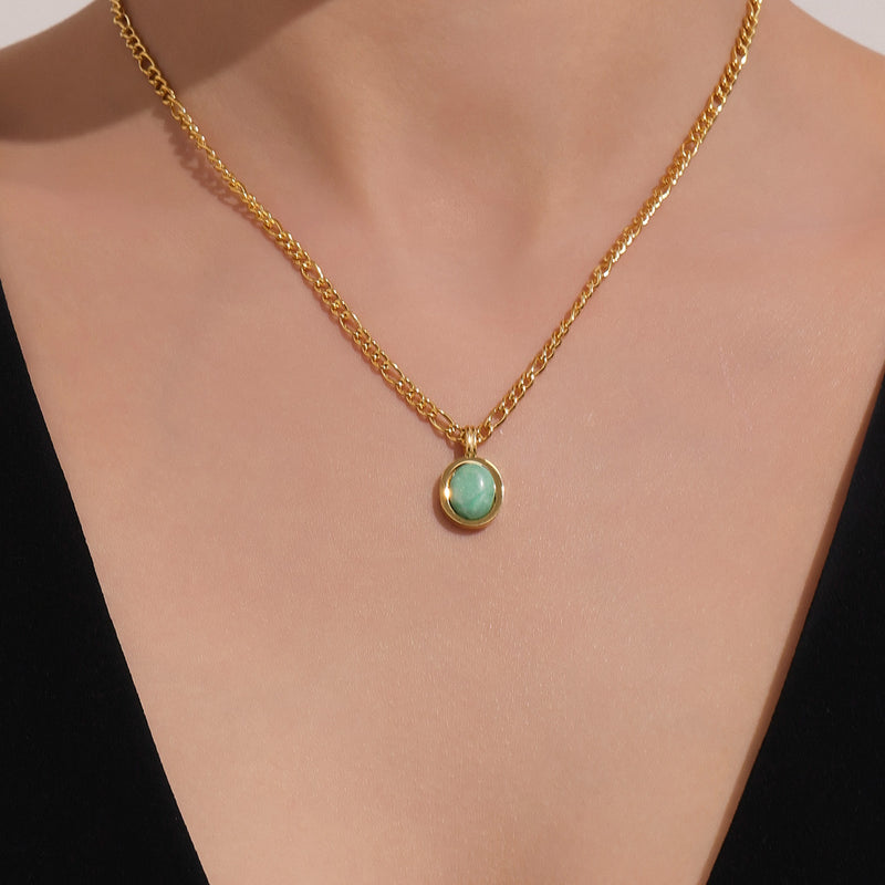 B廠-天然石橢圓不鏽鋼吊墜項鍊歐美個性簡約風時尚百搭飾品批發「P1034」25.08-2
