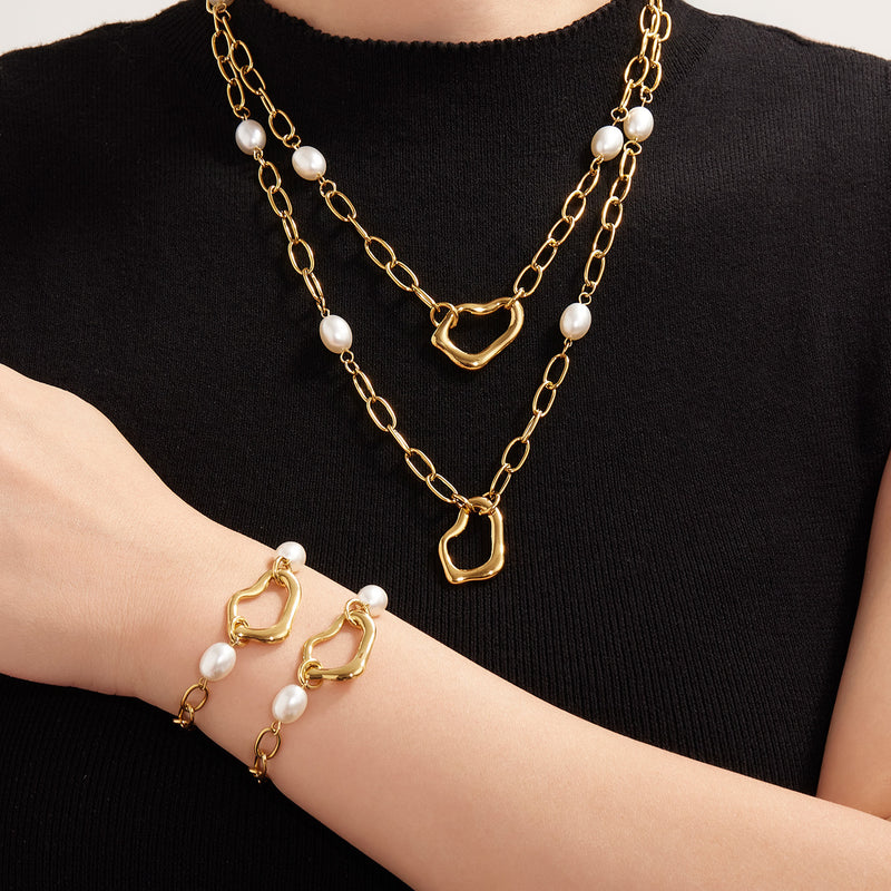 B廠-歐美不鏽鋼幾何形膠珠手工手鍊項鍊套裝不規則愛心鍍18k金「TXP357-TXE357」25.08-3