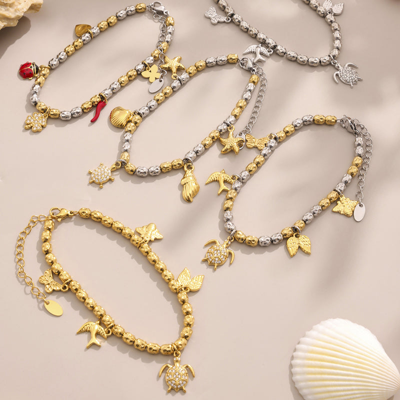 B廠-愛心瓢蟲四葉花鋯石手鍊拼色幾何元素歐美時尚配件飾品批發「TXP350」25.08-2