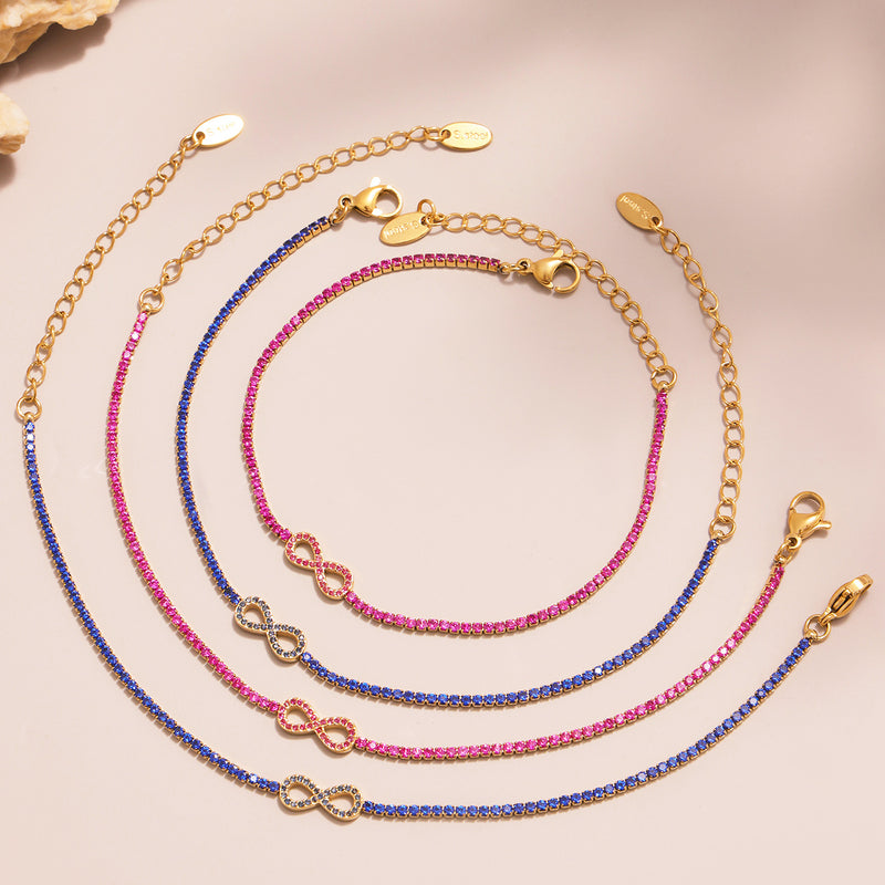 B廠-無限循環滿鑽數字8鋯石項鍊手鍊耳環鈦鋼歐美個性百搭套裝「TXP320」25.08-2