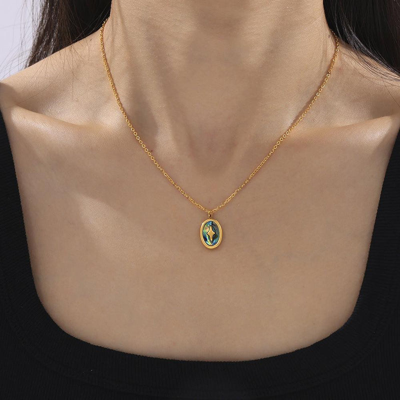 B廠-跨境歐美新款彩貝吊墜鎖骨項鍊疊戴風鈦鋼鍍18k金輕奢百搭鎖骨鏈「P1867-P1694」24.07-2