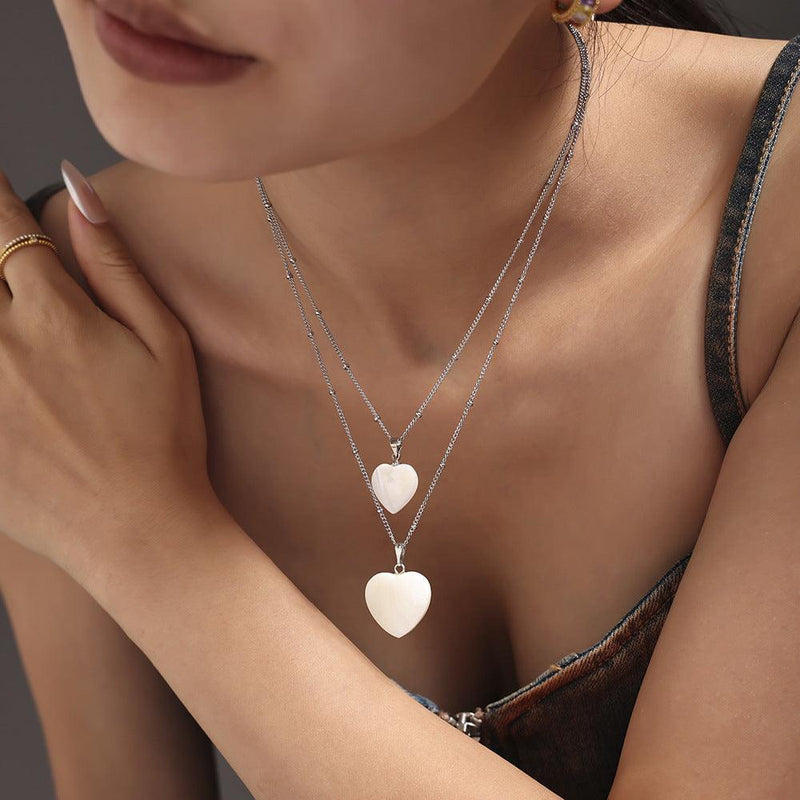 B廠-不鏽鋼天然貝母愛心鎖骨項鍊耳釘小眾精緻禮物套裝工廠批發「F388-P2133」24.12-3