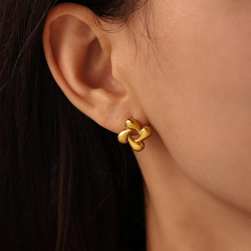 B廠-極簡旋轉花朵不鏽鋼項鍊耳釘套裝小眾精緻氣質首飾現貨批發「P1784-F1273」24.11-2