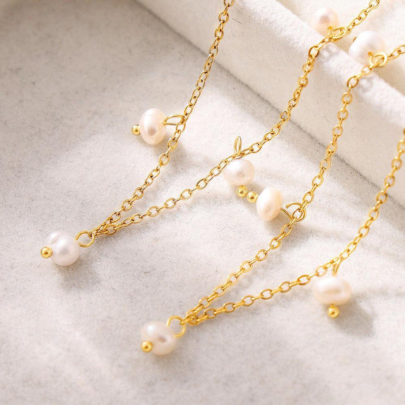 B廠-法式淡水珍珠項鍊ins風簡約甜美風鈦鋼鍍18k真金鎖骨項鍊女「P008」24.08-3