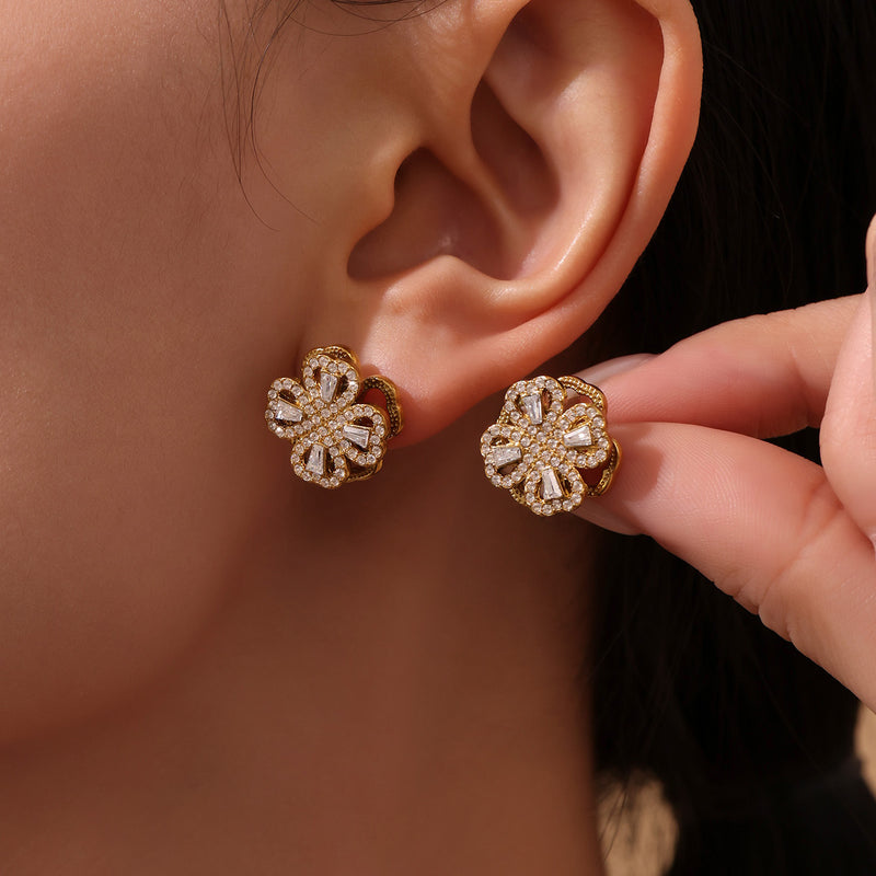 B廠-旋轉超閃鋯石四瓣花項鍊戒指耳釘ins時尚氣質鈦鋼18K金套裝「TXP308」25.07-2