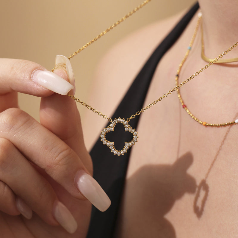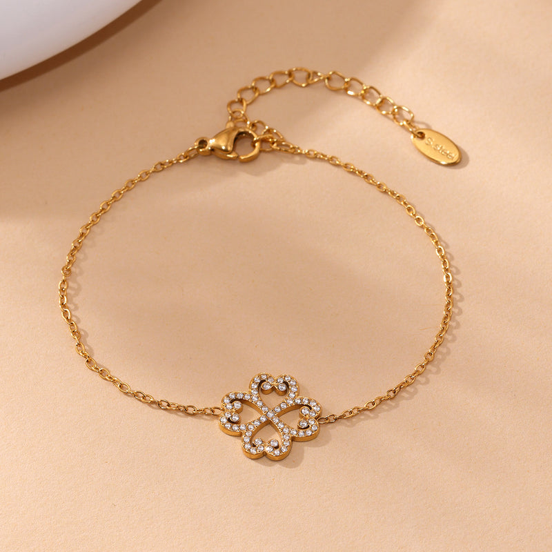 B廠-鏤空超閃鋯石四葉花項鍊手鍊簡約氣質不鏽鋼18K金女式套裝「TXP305」25.07-2