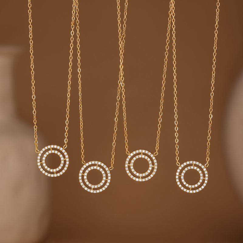 B廠-超閃5A鋯石圓圈吊墜鎖骨項鍊手鍊小眾設計感不鏽鋼新款套裝「TXP307」25.07-2