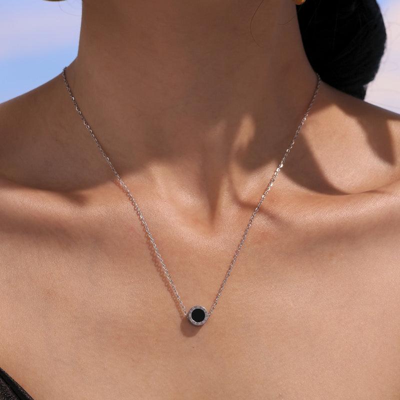 B廠-超質感白海貝黑亞克力羅馬數字手鍊項鍊個性輕奢不鏽鋼套裝「E559-P128」25.05-2