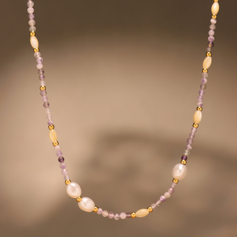 B廠-法式極細天然石小金珠愛心鎖骨項鍊手工串珠小眾設計感頸鏈「P1336」25.05-2