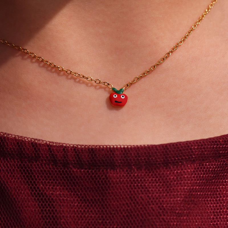 B廠-不鏽鋼滴油可愛紅蘋果童趣項鍊手鍊耳釘戒指兒童飾品套裝女「TXP252」25.05-1