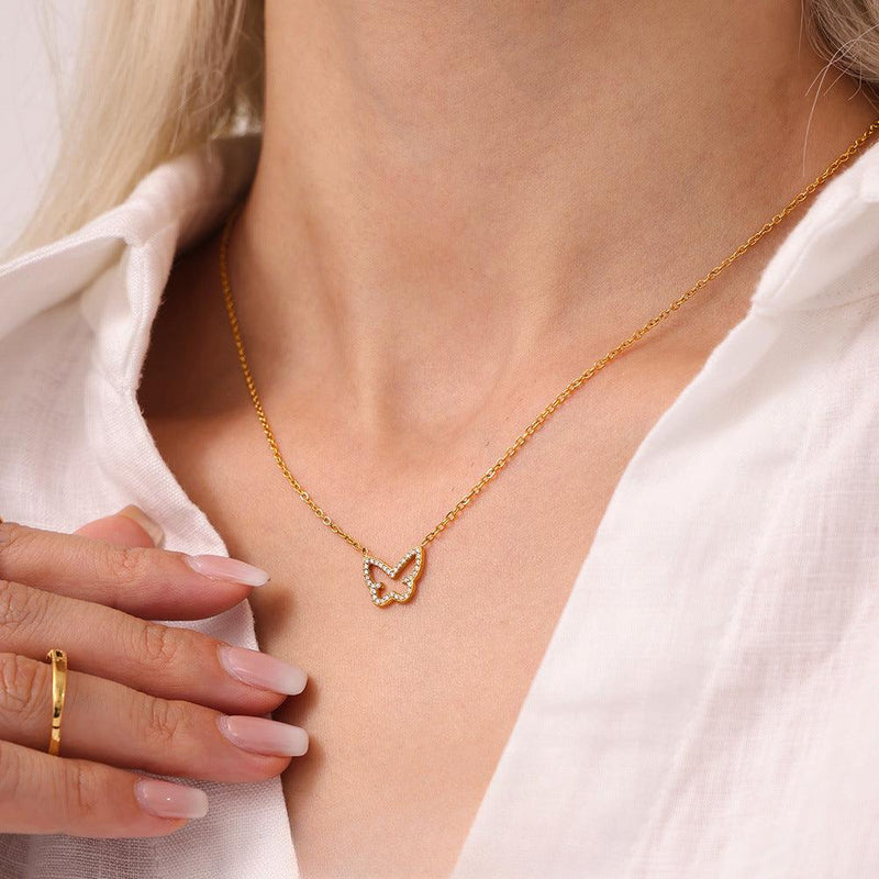B廠-彩色鋯石蝴蝶溫柔項鍊女款輕奢感精緻不鏽鋼頸鏈簡約鎖骨鏈「P2000」25.04-1